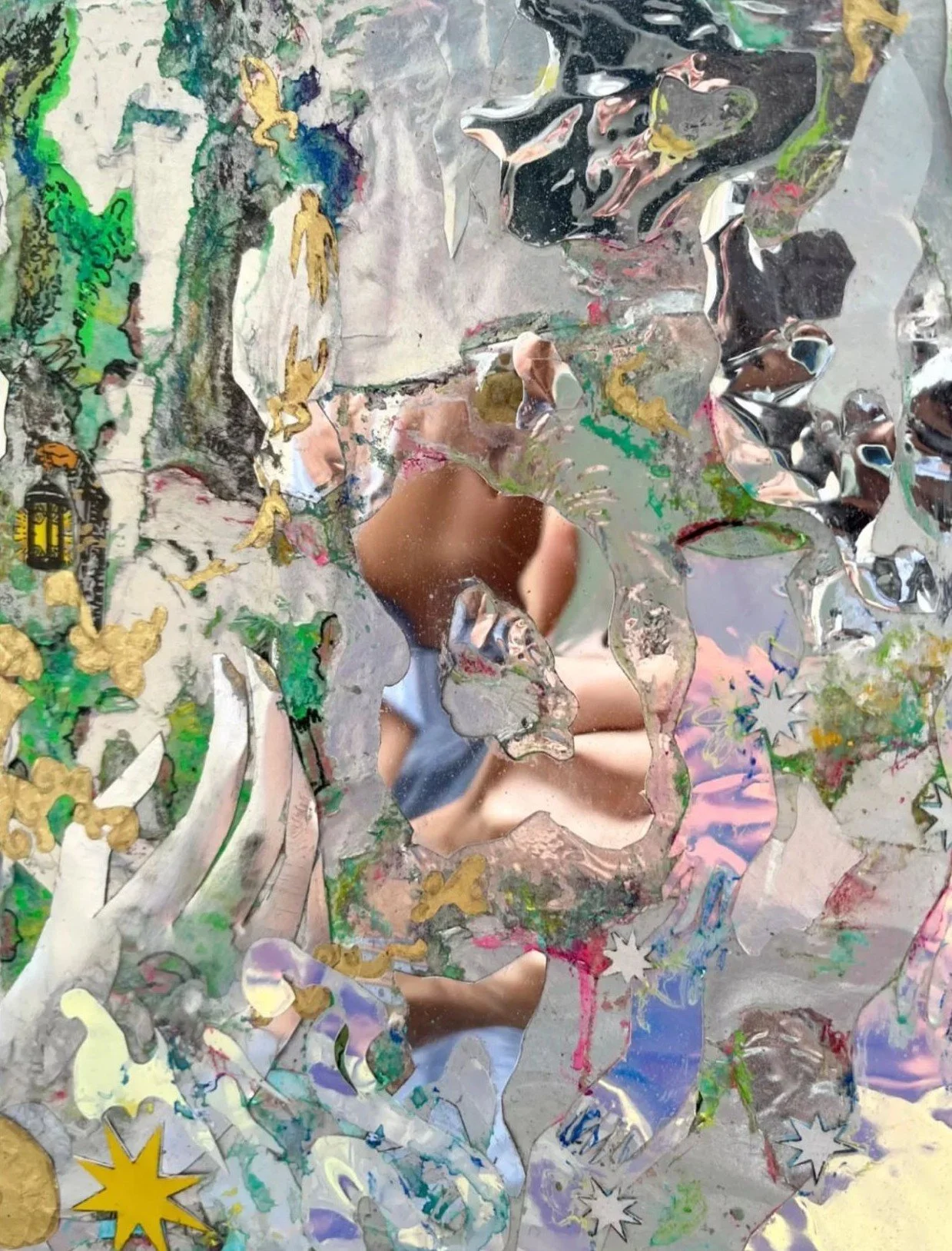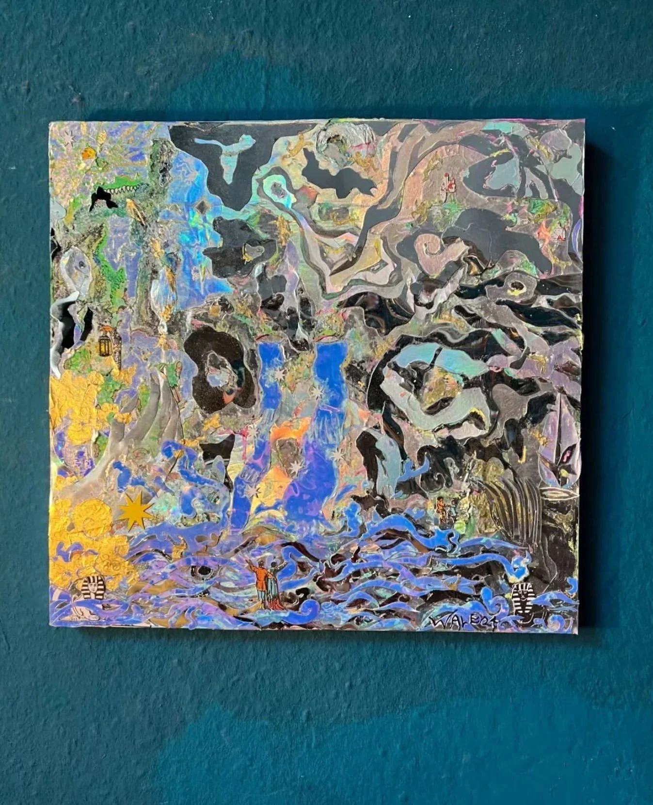 2024, mixed media collage over wood, 30x30cm